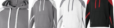 9 oz., 60% cotton, 40% polyester athletic fleece; Woven label; Hood with drawcord on Adult sizes only; Contrast color inserts; Raglan sleeves; Front pouch pocket; Rib-knit cuffs and bottom band;