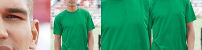 - 3.7 oz., 100% polyester wicking knit