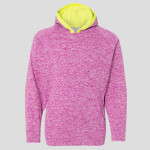 7 oz.; 100% Spun Polyester fleece fabric; Self-fabric cuffs; Contrast hood lining; Side-entry pockets; Underarm an side gusset panels;