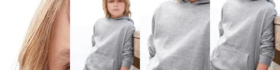 - Raw-edge seams around hood opening, shoulders, pocket seams, cuffs, waistband and side seams