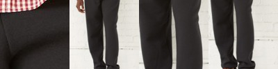 - Flat front waistband with covered elastic at back