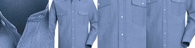 - 4.0 oz., 65/35 polyester/cotton chambray