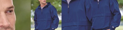 100% micron™ polyester; Micromesh lined nylon body & hood; Water-resistant and wind-resistant; Woven label; Adjustable mesh-lined hood with eyelets and concealed cord locks; Back vent with adjustable closure for full decoration access; Front zippered pockets; Half-elastic cuffs; Open bottom with adjustable elastic hidden drawcord; Drop tail hem;