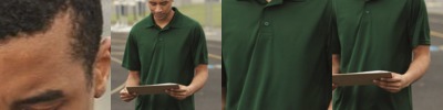 5 oz./yd2 / 172 gsm, 100% polyester face plaited to 60% polyester, 40% cotton back (total overall garment 61% polyester, 39% cotton); Proprietary dual-sided mesh pique knit constructed of fine denier wicking polyester on the outside and soft-as-cotton wicking blend on the inside; Moisture-wicking performance with UV 15-39 protection; Matching flat-knit collar; Side vents; Luxury, comfort and performance in one; Dyed-to-match 3 button placket;