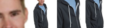 - Contrasting drawcord and zipper