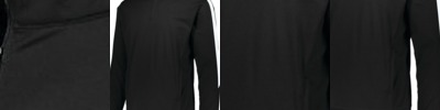 - 90/10 polyester/spandex neck and cuffs for added stretch and better fit over pads