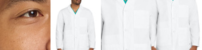 65/35 poly/cotton poplin Locker loop Left chest pocket with pen slot Top-loading front pockets Interior tablet pocket Back yoke 3-button placket opening Center back vent Wink heat transfer logo at left pocket Size medium: 29.5-inch back length