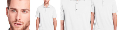 5 oz./yd2 / 172 gsm, 100% polyester face plaited to 60% polyester, 40% cotton back (total overall garment 61% polyester, 39% cotton); Proprietary dual-sided mesh pique knit constructed of fine denier wicking polyester on the outside and soft-as-cotton wicking blend on the inside; Moisture-wicking performance with UV 15-39 protection; Three-button placket; Dyed-to-match buttons; Matching flat-knit collar with contrast double tipping; Side vents; Active fit; Easy care;