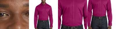 The ultimate in professional performance, this wrinkle-resistant shirt also releases stains. The soft, smooth fabric gives you a polished look that's comfortable enough for year-round wear. 4.3-ounce, 55/45 cotton/poly twill Stain release Wrinkle-resistant Open collar Dyed-to-match buttons Back yoke