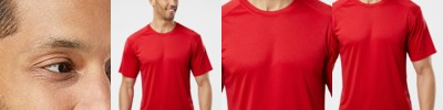 3.5 oz., 100% combed and ring-spun liquid cotton; 40 singles; Optimal stretch and recovery; Fashion fit; Side seams; Raw-edge double-collar neck; Loose fit; Tear-away label; Made in a W.R.A.P. certified factory;