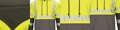 - 360° visibility with front and back 2" segmented heat seal silver reflective striping