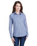 3.4 oz., 100% cotton yarn dyed poplin; semi-fitted styling; gingham microcheck pattern; soft-collar styling; curved hemline; bust and back darts for feminine fit; Oeko-Tex® Standard 100 certified; WRAP certified;