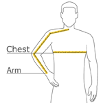| Chest | 30-32 | 34-36 | 38-40 | 42-44 | 46-48 | 50-52 | 54-56 | 58-60 | 62-64 |