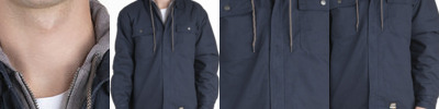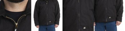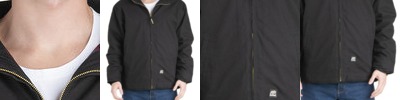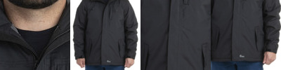 9.4 oz./yd², 100% polyester Relaxed fit Self-collar Concealed zip front placket/Faux leather zipper pull Quilted shoulder and back panels Woven loop label