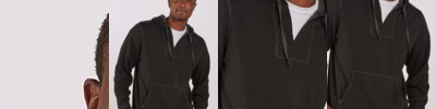 9.4 oz./yd², 100% polyester fleece Slash neck opening detailing Self-fabric hood Contrast braided drawcords Front pouch pocket Woven loop label