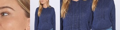 6.2 oz./yd², 80/17/3 viscose/polyester/elastane brushed Hacci knit Self-hood with buttonholes for drawcord exits Self-drawcord with knotted ends Self-back neck tape Hem finished with 2N turnback Folded rib sleeve cuffs Thumbhole on cuffs Folded rib V-neck detail Self-drawcords No hood lining Side seams Loop label at center back neck Woven loop label