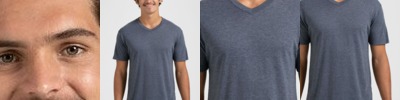 Retail fit Tear-away label Side seamed Athletic Heather/Black Heather: 4.2-ounce, 90/10 Airlume combed and ring spun cotton/poly Heather CVC Colors: 4.2-ounce, 52/48 Airlume combed and ring spun cotton/poly