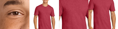Retail fit Tear-away label Side seamed Shoulder taping Athletic Heather/Black Heather: 4.2-ounce, 90/10 Airlume combed and ring spun cotton/poly Heather CVC Colors: 4.2-ounce, 52/48 Airlume combed and ring spun cotton/poly