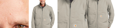 This soft shell jacket combines iconic Carhartt looks with unbeatable weather protection. The nylon is 35% lighter than traditional duck but with twice the abrasion resistance. 8.1-ounce, 97/3 nylon/elastane 100% polyester stretch taffeta lining Rain Defender ® durable water repellent Wind Fighter ® technology tames wind Rugged Flex ® technology for ease of movement Reverse coil center front zipper with kissing welt Zip-through cadet collar Secure interior pockets Two lower front pockets Adjustable cuffs Drop tail hem for added coverage Carhartt-strong, triple-stitched main seams Carhartt label sewn on left pocket Carhartt Warmth Rating Earned: Level 1â¿¿Warm Relaxed fit
