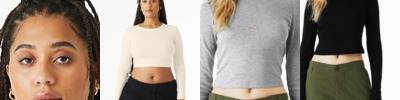 - Ribbed bottom band and sleeve cuff with raw edge seams
