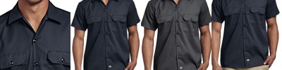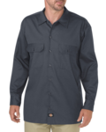 4.6 oz., 65% polyester, 35% cotton mechanical stretch twill; Enhanced moisture-wicking and stain-release finish; Improved breathability for all day comfort; Two chest pockets with flap and button closure; Pencil division in left pocket; 20-line melamine buttons; Dickies logo patch at bottom of placket; Extra-long tail; Shirt colors match dickies traditional work pants;