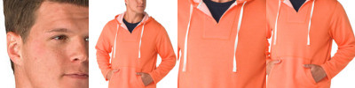 - Single ply, two-piece hood with contrasting draw cords
