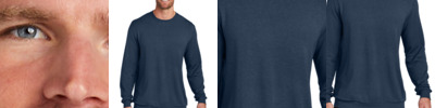 Primed for 24/7 comfort, a proprietary finish gives our tri-blend tees unbelievable softness at a great value. 4.5-ounce, 50/37/13 poly/cotton/rayon 1x1 rib knit neck Shoulder to shoulder taping Tear-away label Please note: This product is transitioning from white to black tear-away labels. Your order may contain a combination of both colored labels.