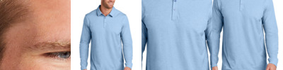 Live your best life at work or after hours in this trend-forward polo designed with enhanced stretch for supreme comfort. 4.7-ounce, 58/42 pima cotton/polyester Easy wash and wear Wrinkle-resistant Self-fabric collar V-neckline Two-button placket with faux horn buttons Elongated sleeves Side vents TM faux leather patch label at left hem (Black Heather and Grey Heather have black patches, all others are tan)