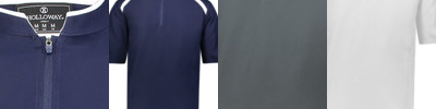- 4.25 oz, 87% polyester, 13% elastane heathered wicking knit with Coolcore technology