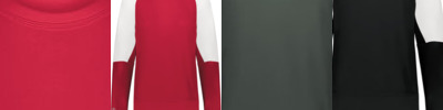 - 1x1 ribbed crewneck collar