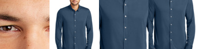 All the traditional components of a classic dress shirt combined with the comfortable drape of soft jersey fabric in a modern, moisture-wicking hybrid silhouette. A versatile choice for the office featuring all the comfort of a favorite tee. Fabric+Weight 5-ounce, 92/8 poly/spandex jersey Features+Benefits Button-down collar with collar stand Rimmed buttons with a satin finish Adjustable mitered cuffs Curved shirt tail hem