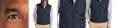 With a supple diamond-quilted shell designed to resist water and provide warmth when you need it, this vest delivers unbeatable performance and unmistakable style. 100% polyester shell and lining 2.9-ounce polyfill insulation Brooks Brothers tie-stripe hanging loop Metallion coil front zipper with metal Brooks Brothers Golden Fleece logo zipper pull and piped kissing welt Rib knit lined collar Hand pockets secured with Brooks Brothers logo snaps Interior zippered chest pocket Brooks Brothers tartan plaid on interior yoke and inside hand pockets Faux leather label patch Decoration access pocket