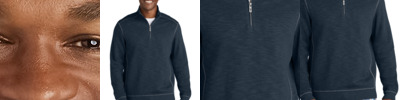 A fashionable sweater alternative, youâ¿¿ll always look pulled together and sophisticated in this comfortable 1/2-zip that features a slub texture knit and sun-bleached wash. 11.7-ounce, 45/33/22 cotton/pima cotton/ Tencel Lyocell Pigment garment overdyed fabrication Mockneck with 1/2-zip placket Side panels built-in for stretch Rib knit cuff and hem Distinctive contrast stitching Embroidered Marlin at center back neck Cut-out Marlin on zipper pull