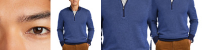 The perfect throw-on-and-go option for any event, this machine washable 1/4-zip sweater features natural Merino wool and an eye-catching birdseye pattern. 100% extra-fine Merino wool Machine washable for easy care Fully fashioned throughout 1x1 rib neck, cuffs and hem 1/4-zip cadet collar Antique silver zipper pull with Brooks Brothers logo