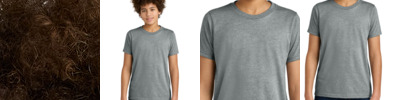 4.3-ounce, 60/40 combed ring spun cotton/poly, 32 singles CVC blend 1x1 rib knit neck Shoulder to shoulder taping Tear-away label Side seamed Relaxed fit