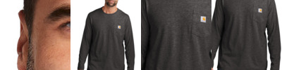 This midweight pocket tee fights sweat and is built for hard work thanks to Carhartt Force ® technology. Durable 5.75-ounce, 65/35 cotton/poly stretch plaited jersey knit 59/41 cotton/poly stretch plaited jersey knit (Heather Grey) 60/40 poly/cotton stretch plaited jersey knit (Other Heathers) Carhartt Force ® technology wicks sweat, dries fast and fights odors FastDry ® technology keeps you cool for all-day comfort UPF 25+ Raglan sleeves to increase range of motion Left chest pocket with pen stall Tagless neck label Smooth flatlock seams Ventilated side panels Drop tail hem Carhartt label sewn on left chest pocket Carhartt Force ® labeling on left sleeve Relaxed fit