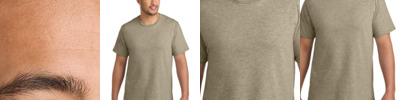 A budget-friendly choice, this remarkably soft tee is created from a CVC blend for an eye-catching texture. 4.5-ounce, 60/40 cotton/poly 1x1 rib knit neck Shoulder to shoulder taping Tear-away label Please note: This product is transitioning from white to black tear-away labels. Your order may contain a combination of both colored labels.