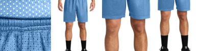 Keep up the pace in a moisture-wicking, open hole mesh short with PosiCharge technology which locks in your logo. 3.4-ounce, 100% open hole poly mesh with PosiCharge technology 2.5-ounce, 100% poly tricot lining Moisture-wicking Open-hole mesh 7-inch inseam Elastic waistband with continuous loop drawcord Tear-away label