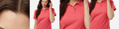 4.4-ounce, 100% recycled polyester interlock with PosiCharge technology body 4.1-ounce, 100% recycled polyester ultra-fine flat back mesh with PosiCharge technology This product's carbon footprint has been measured and reduced through a combination of preferred materials and investing in carbon offset projects through the ClimeCo Certified Product Program Moisture-wicking Odor-resistant Self-fabric collar Self-fabric neck tape Mesh back panel, under arm inserts, and colorblocked mesh sleeve insets 2-button Y-neck placket Dyed-to-match buttons Forward shoulder seams Tear-away label A C-FREE ® Product