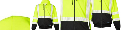 8.4-ounce, 80/20 ring spun cotton/polyester 75/25 ring spun cotton/poly (Ring Spun Sport Grey) Brushed interior and a 100% ring spun cotton face Two-piece dyed-to-match jersey fabric-lined hood Drop shoulder Metal zipper Front pouch pocket 1x1 rib knit with spandex cuffs and bottom band Classic fit, seamless body Recycled, high-performing black tear-away label