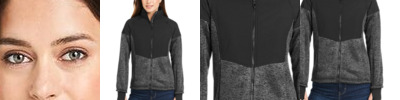- Stretch polyester sweater knit with 75/25 recycled polyester/polyester