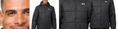 - UA woven label centered on left sleeve hem and UA heat seal center back neck
