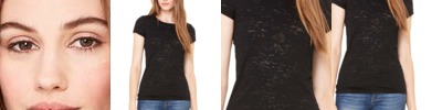 - Capped sleeves with a solid color rib neck trim