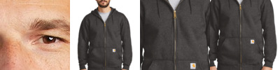 Carhartt's Midweight Hooded Zip-Front Sweatshirt brings considerable comfort to cool-weather worksites. 10.5-ounce, 50/50 cotton/poly blend or 59/41 cotton/poly blend (Black, Carbon Heather, Moss, New Navy)* 50/50 cotton/poly blend (Brite Lime, Brite Orange) 70/30 cotton/poly blend (Heather Grey) Attached three-piece hood with drawcord closure Full-length brass front zipper Two front hand warmer pockets Stretchable, spandex-reinforced, rib knit cuffs and waistband Carhartt-strong, triple-stitching on pocket Carhartt label sewn on left hand warmer pocket Loose fit *Please note: Select colors in Carhartt fleece are currently transitioning from a 50/50 cotton/poly blend to a 59/41 cotton/poly blend. Weight and fabric properties remain the same. Your order may contain a combination of both fabrics.