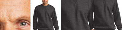 - All color options are heathered fleece throughout body and sleeve